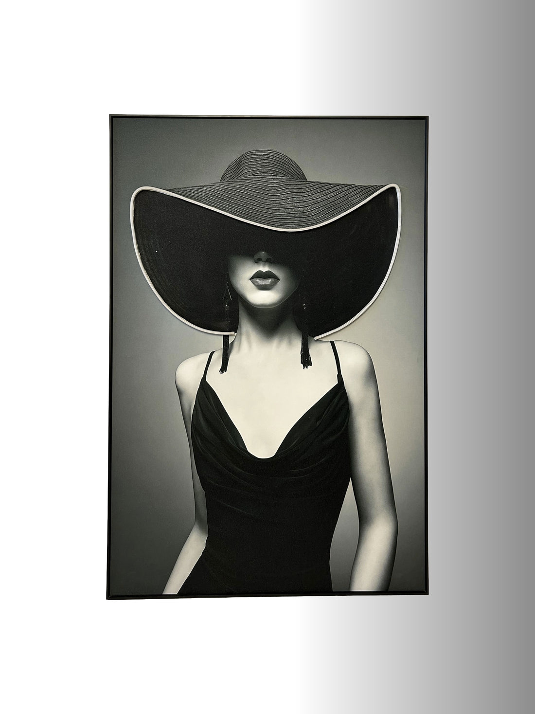 A striking monochromatic study of elegance and mystery. This piece features a woman in a...
