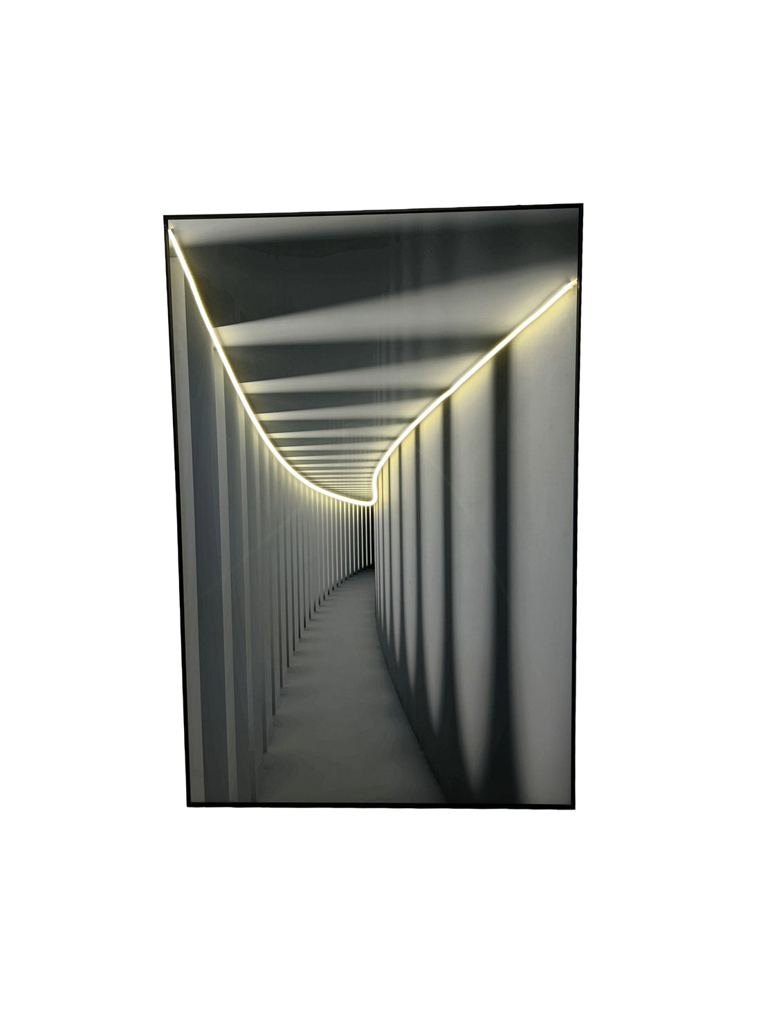 An architectural masterpiece of light and shadow. This contemporary piece uses a sweeping neonstyle light...