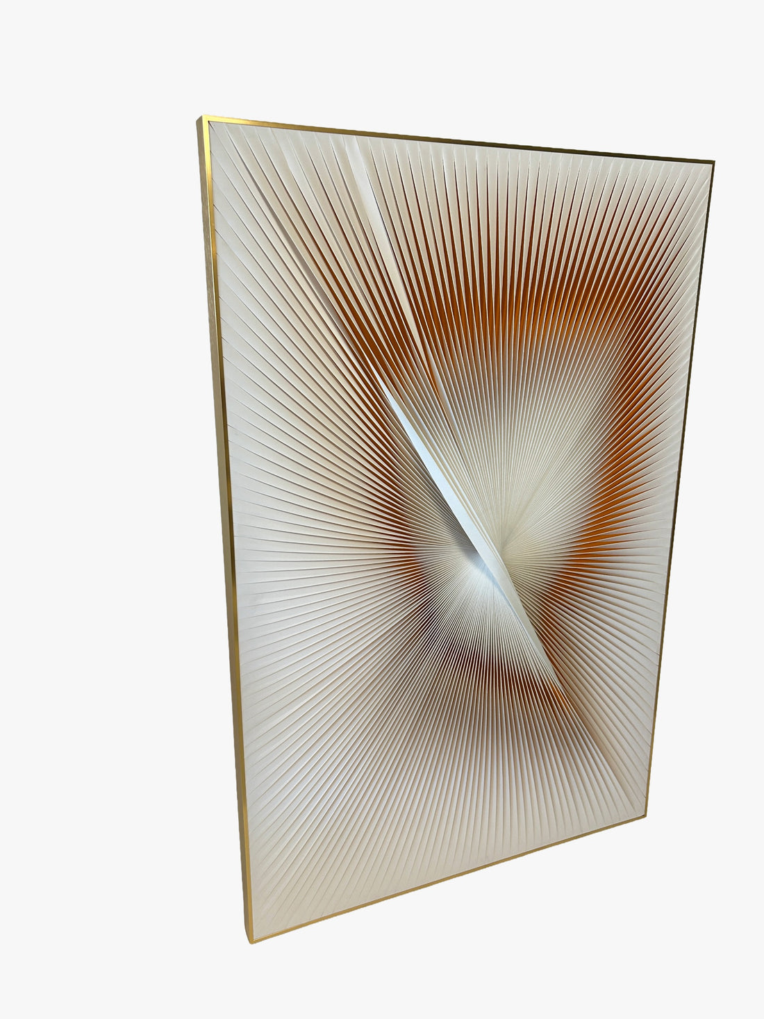 A breathtaking piece of geometric precision, this kinetic-style wall art features hundreds of fine linesradiating...